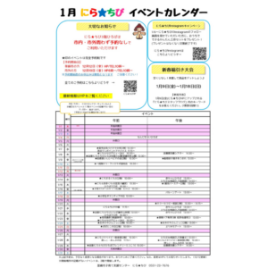 皆さんに安心してご利用いただけるように、スタッフがにら★ちび館内の点検などを行います。にら★ちびは明日1/31(金)はお休みになりますので、お間違えのないようお気をつけください。