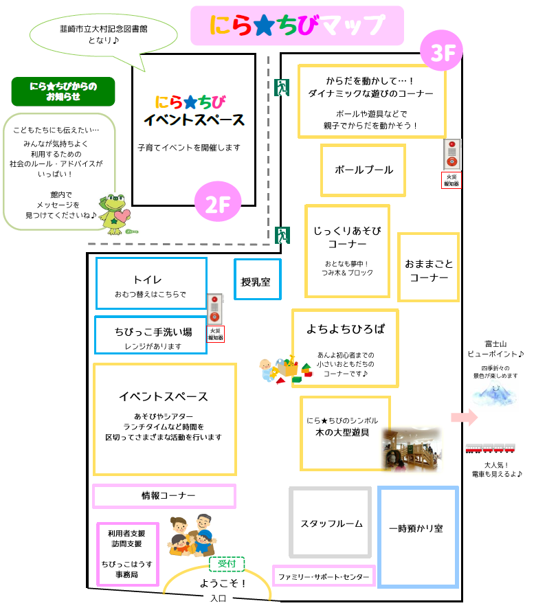 予約方法 | ・初めてご利用になられる方は、まずは会員登録から ・子育てひろば利用 韮崎市の方・市外の方問わずどなたも予約なしでご利用いただけます ・子育てイベント利用 イベントの予約方法をご確認のうえ、HPのイベントカレンダーから予約をしてください。 *イベント予約方法はこちら *イベントカレンダーはこちら |
